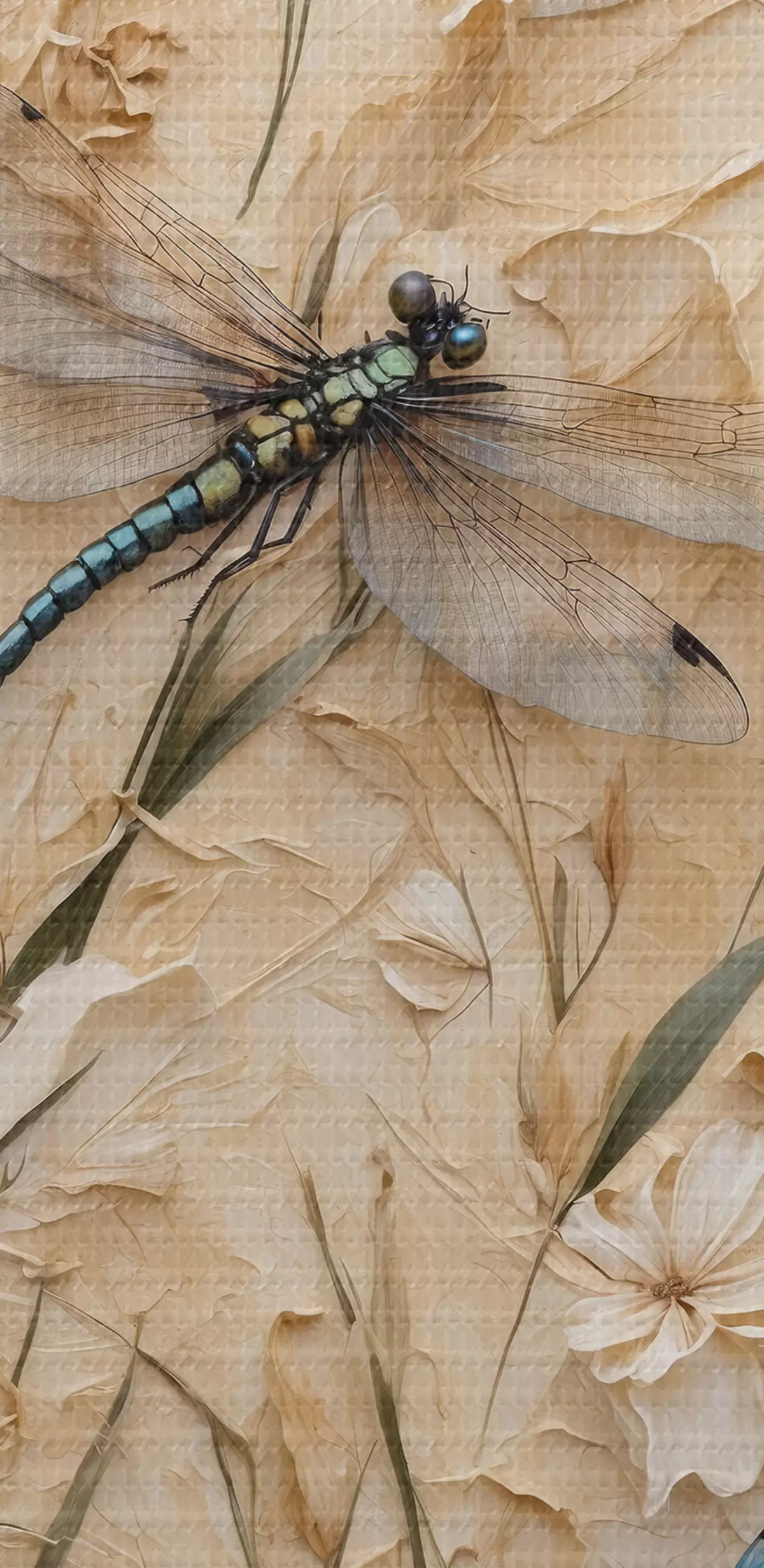 Ronde schilderijen Libellen op abstracte beige achtergrond r39600