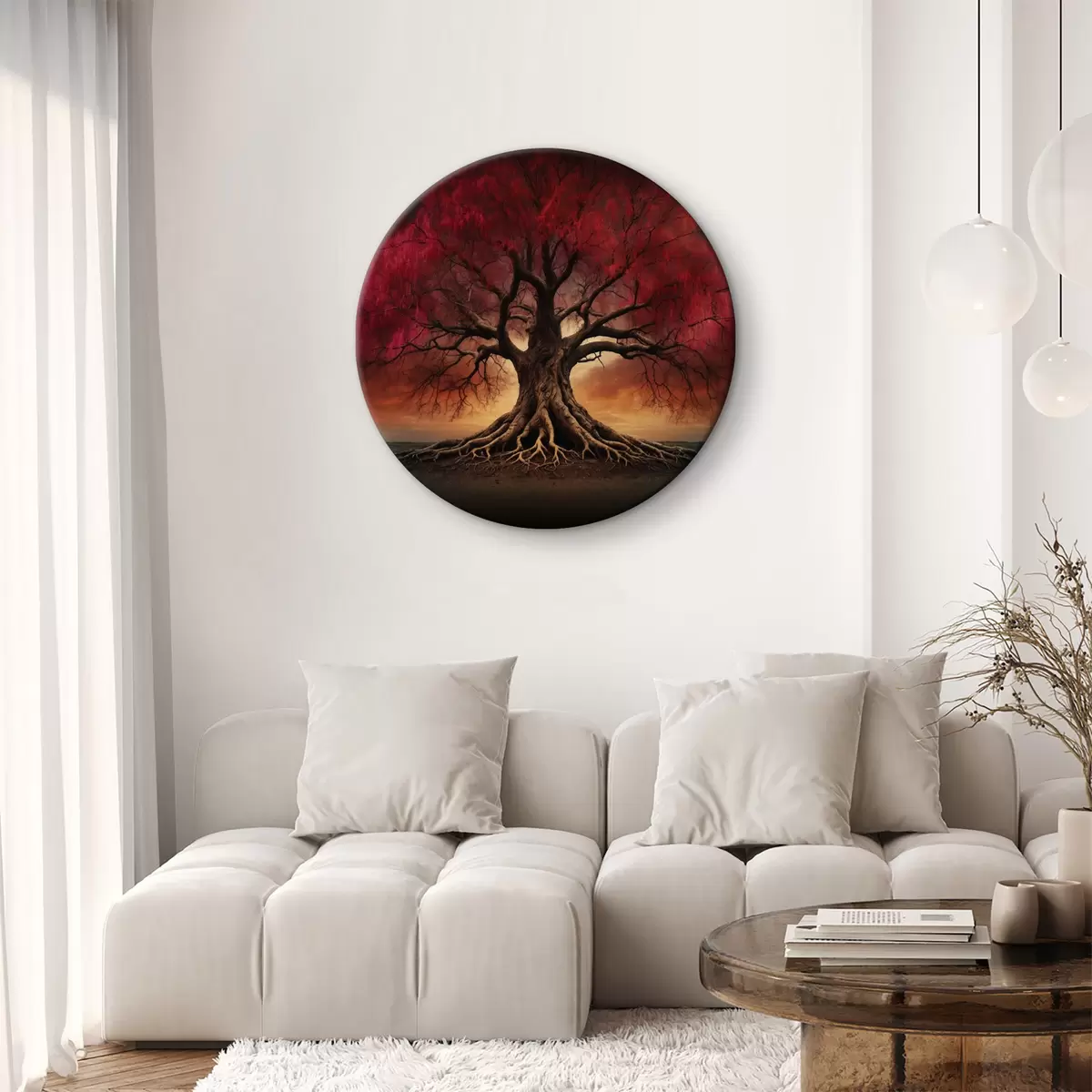 Ronde schilderijen Gewortelde boom in het midden van een leeg veld r39614