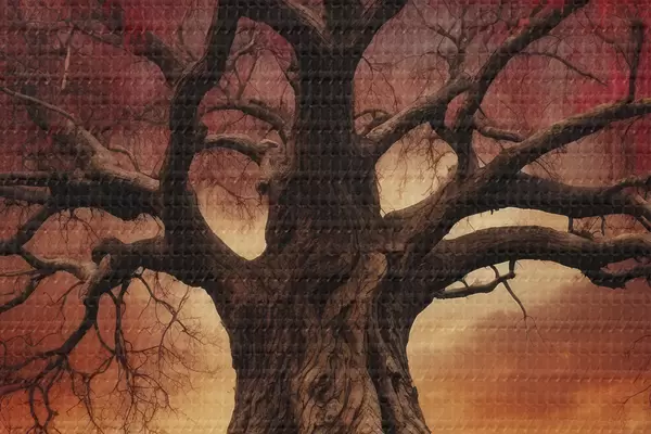 Ronde schilderijen Gewortelde boom in het midden van een leeg veld r39614