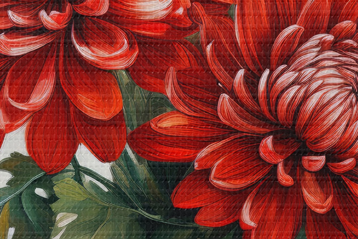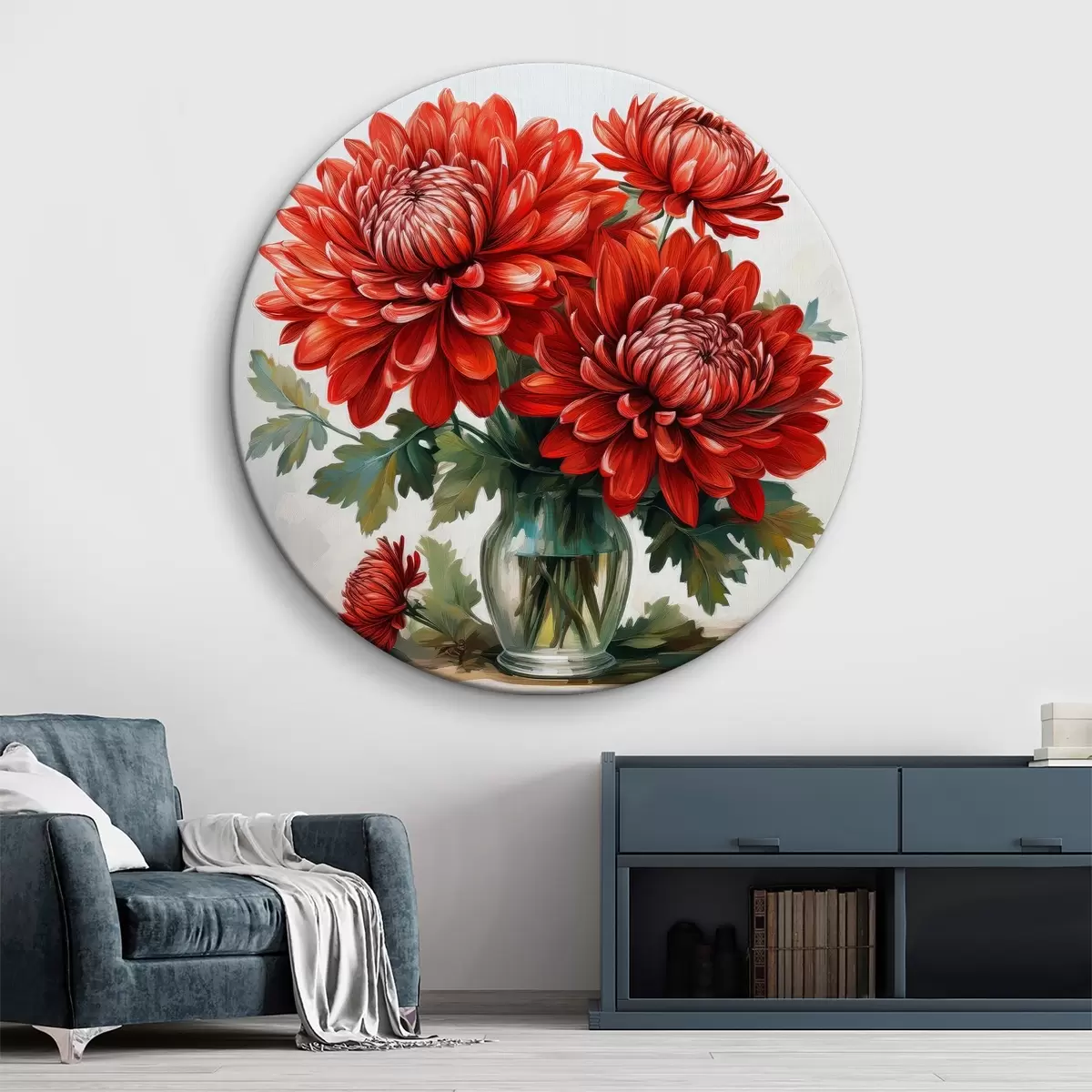Ronde schilderijen een boeket rode, weelderige bloemen Nr r39620