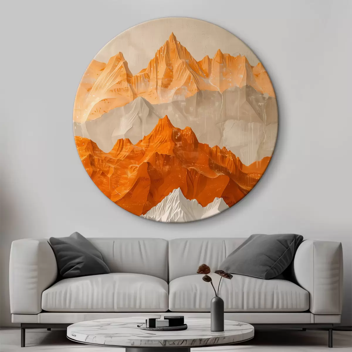 Ronde schilderijen Abstract schilderij van bergketens in oranje en beige Nr r39628