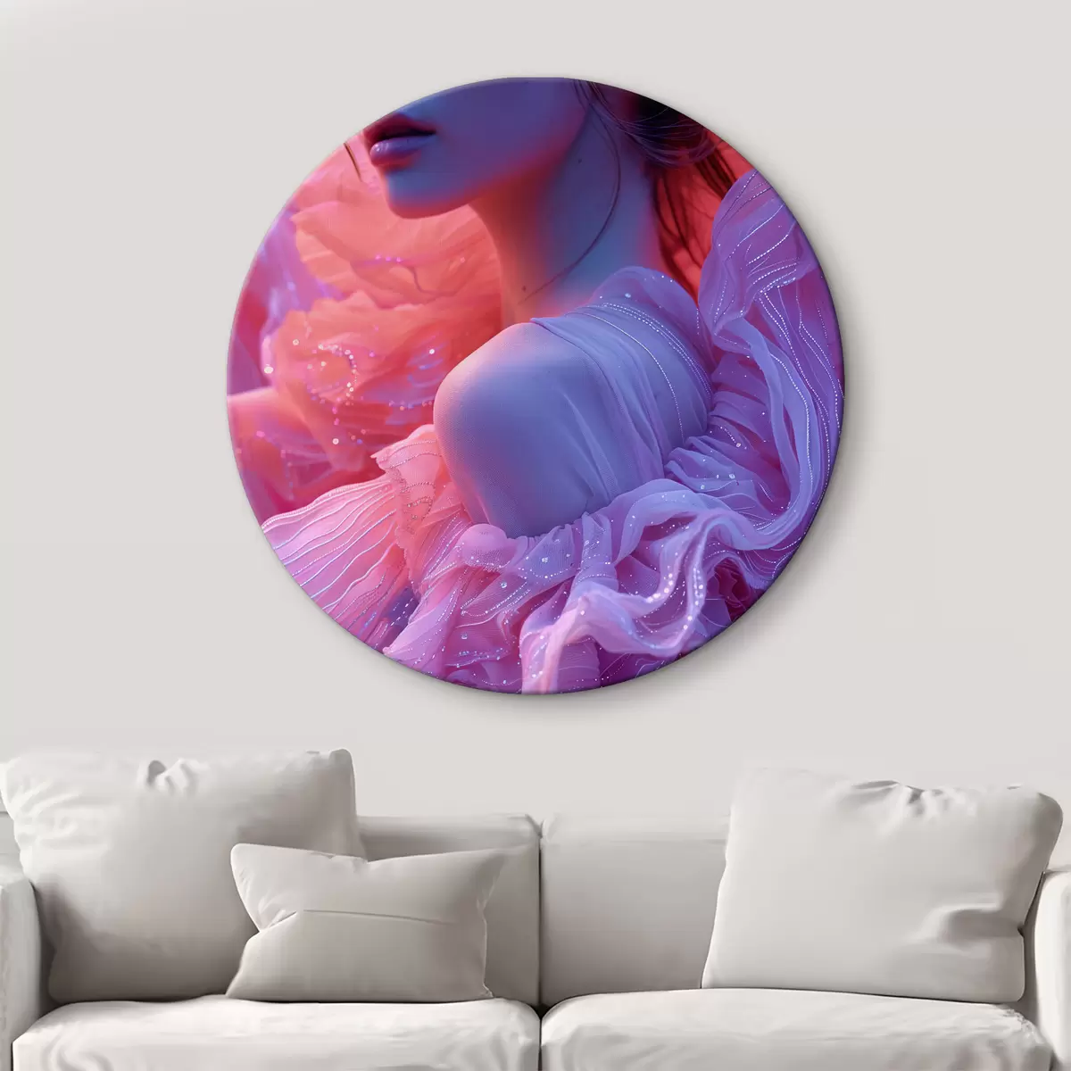 Ronde schilderijen Meisje in een jurk met roze en paarse tinten" r39639