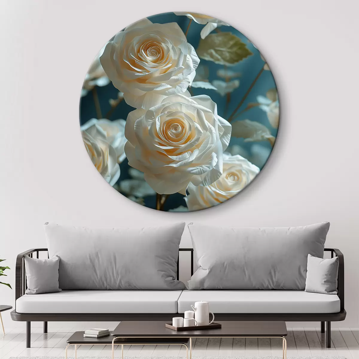 Ronde schilderijen Foto van gigantische witte papieren rozen Nr r39645