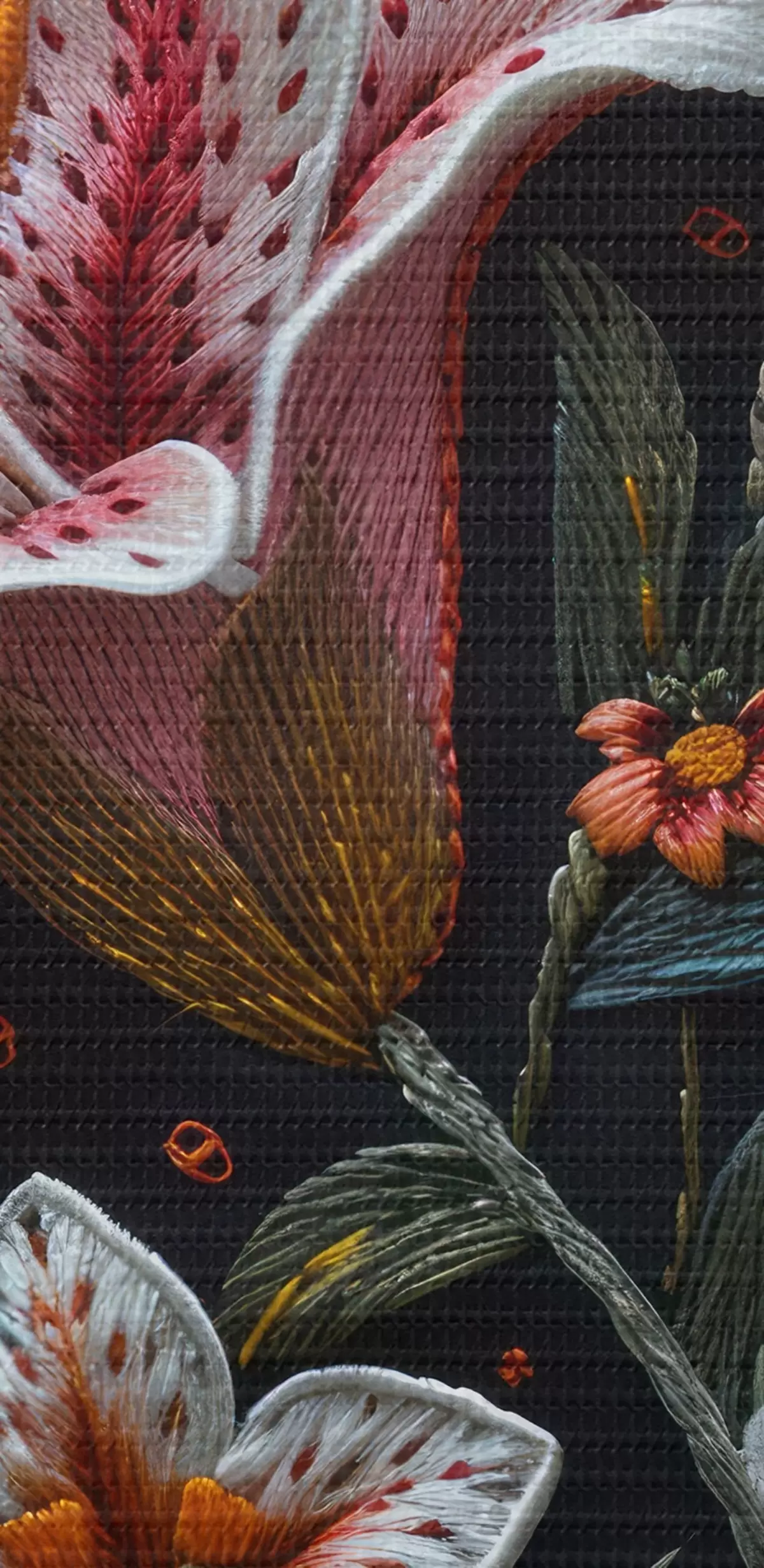 Ronde schilderijen Stompwerkborduurwerk: bloeiende lelies in zwart draad op sierlijke stof met een tweekleurenpalet r39649
