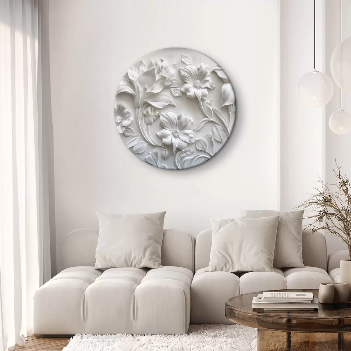 Ronde schilderijen Wit 3D-reliëf van gesneden lelies r39653