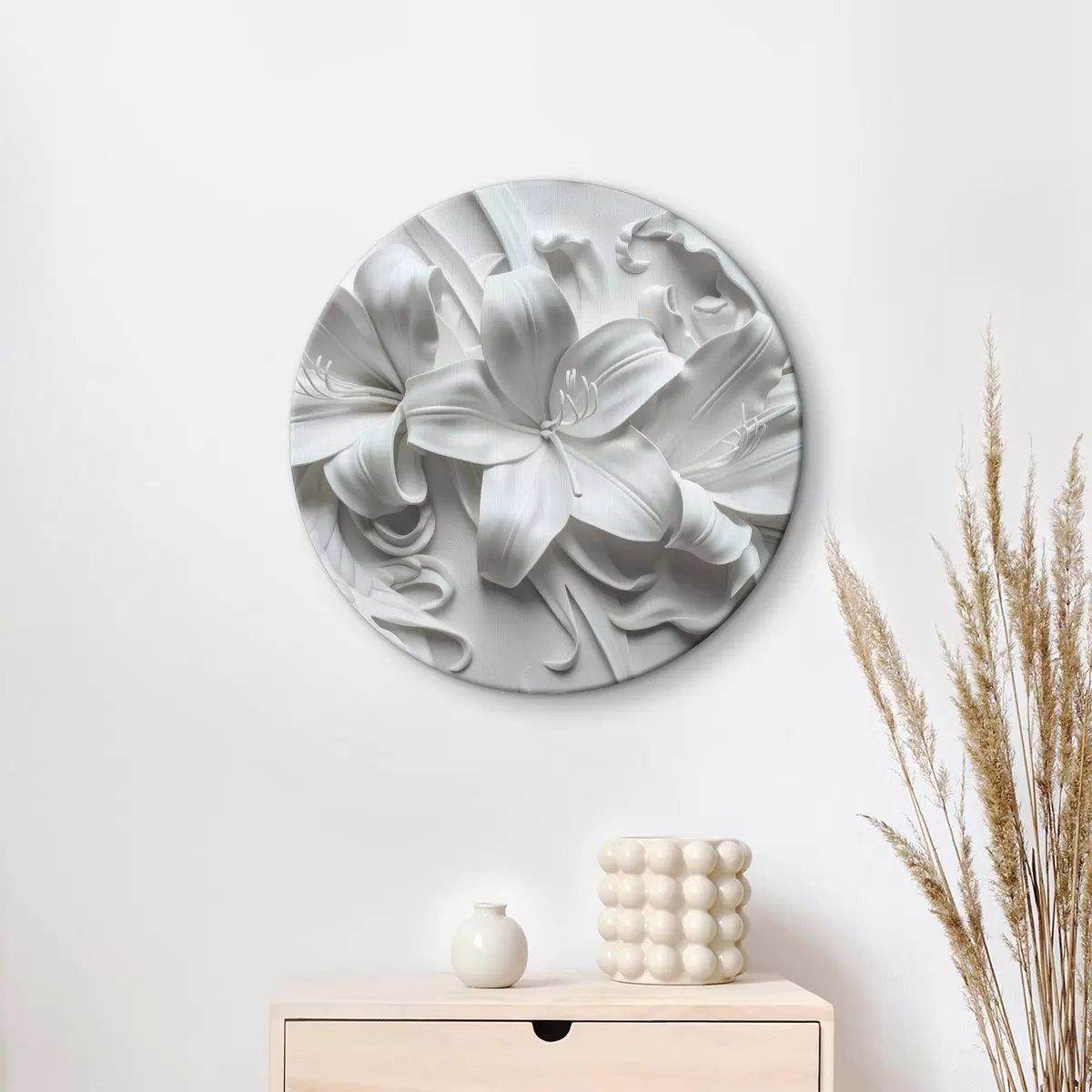 Ronde schilderijen Wit 3D-reliëf van gebeeldhouwde lelies r39654