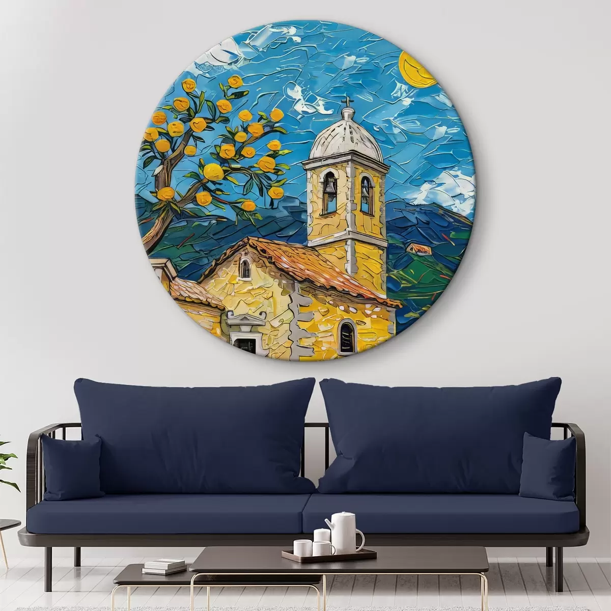 Ronde schilderijen Simone Wunderlich: Frans dorp in indrukwekkend avondlicht Nr r39656