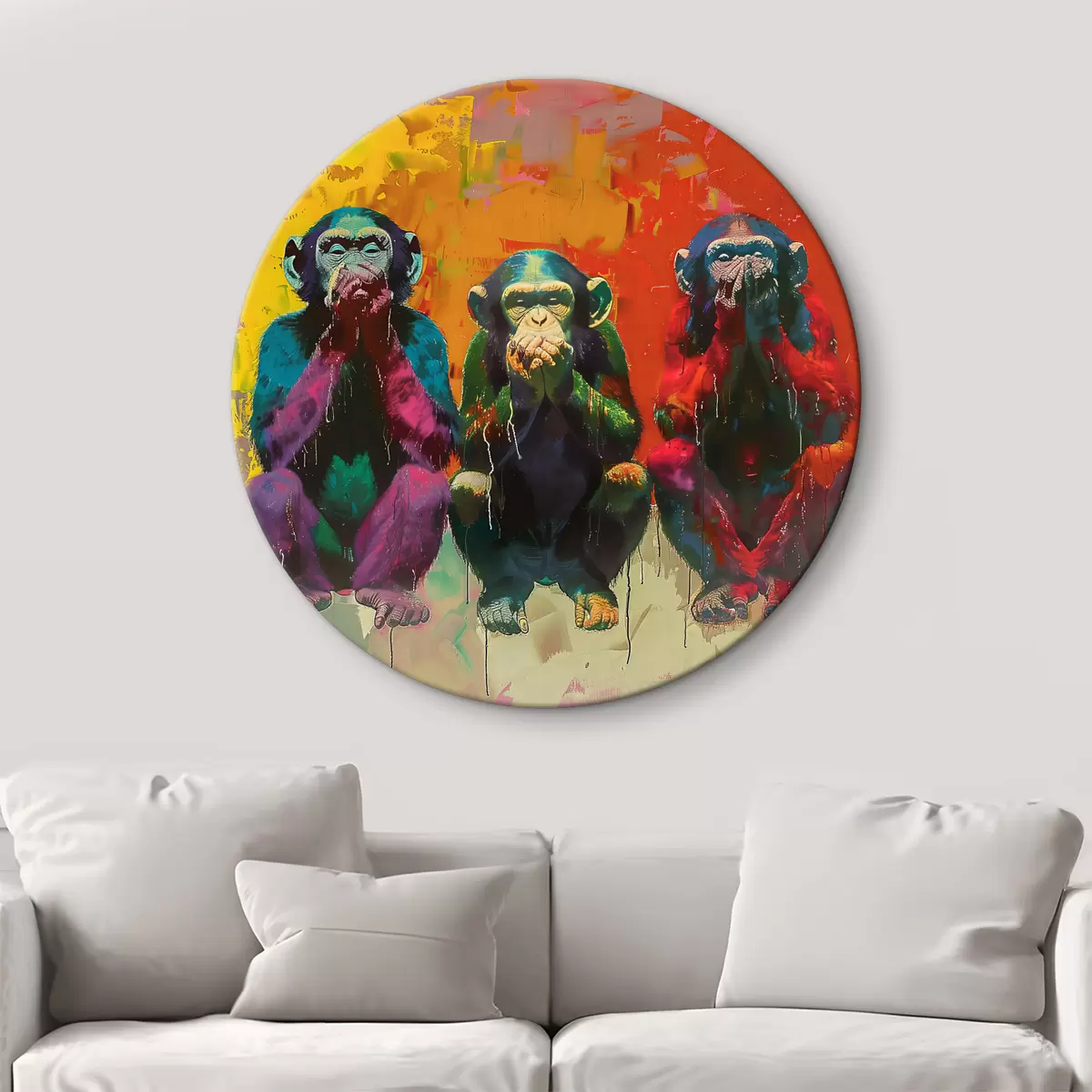 Ronde schilderijen Drie apen r39689