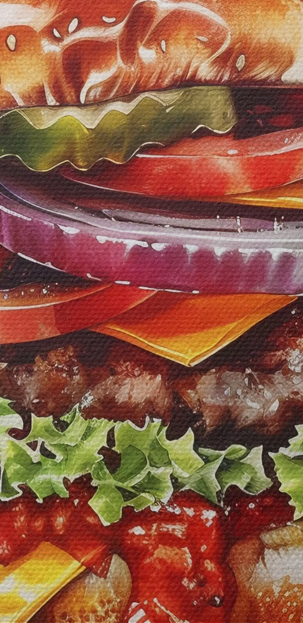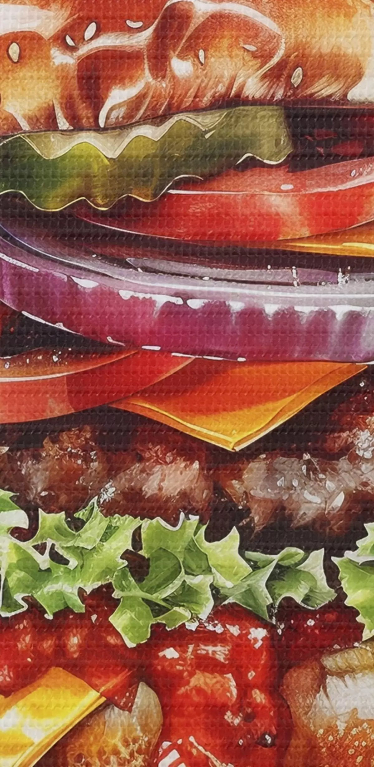 Ronde schilderijen Smakelijke hamburger met vlees, bloemen, aquarel, voedselkunst Nr r39699