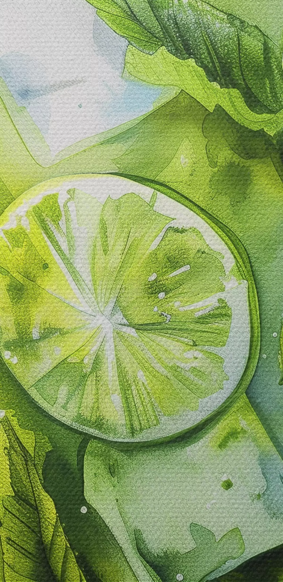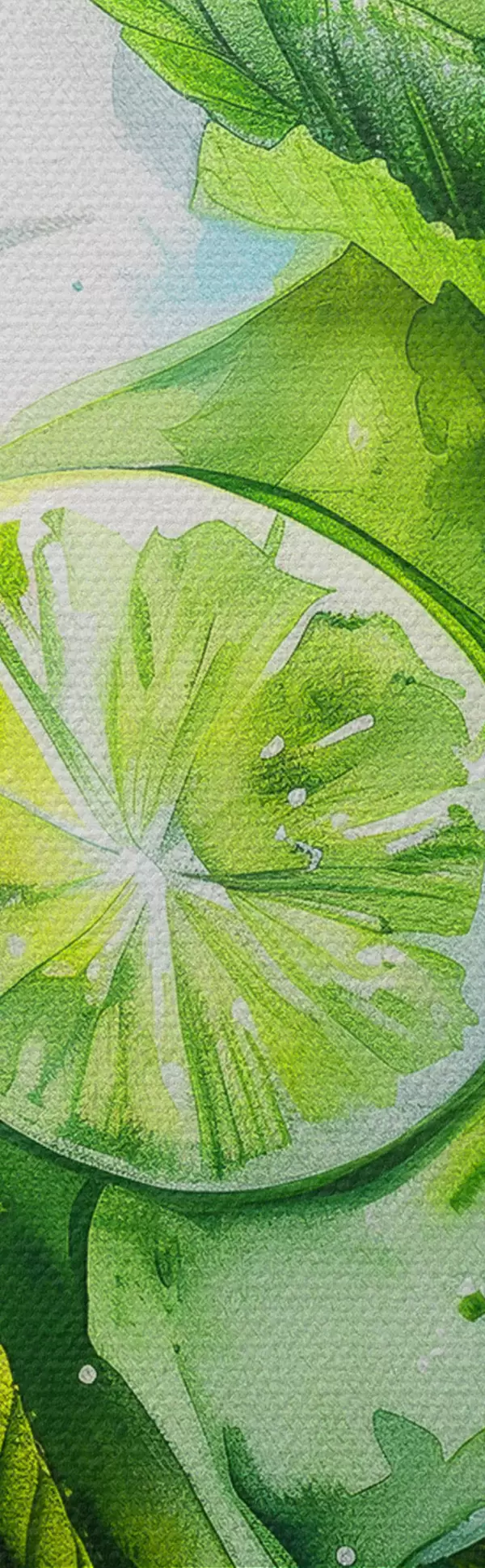 Ronde schilderijen Aquarel zomercocktail, mojito, limoen en munt, bloemen, groene kleuren Nr r39712