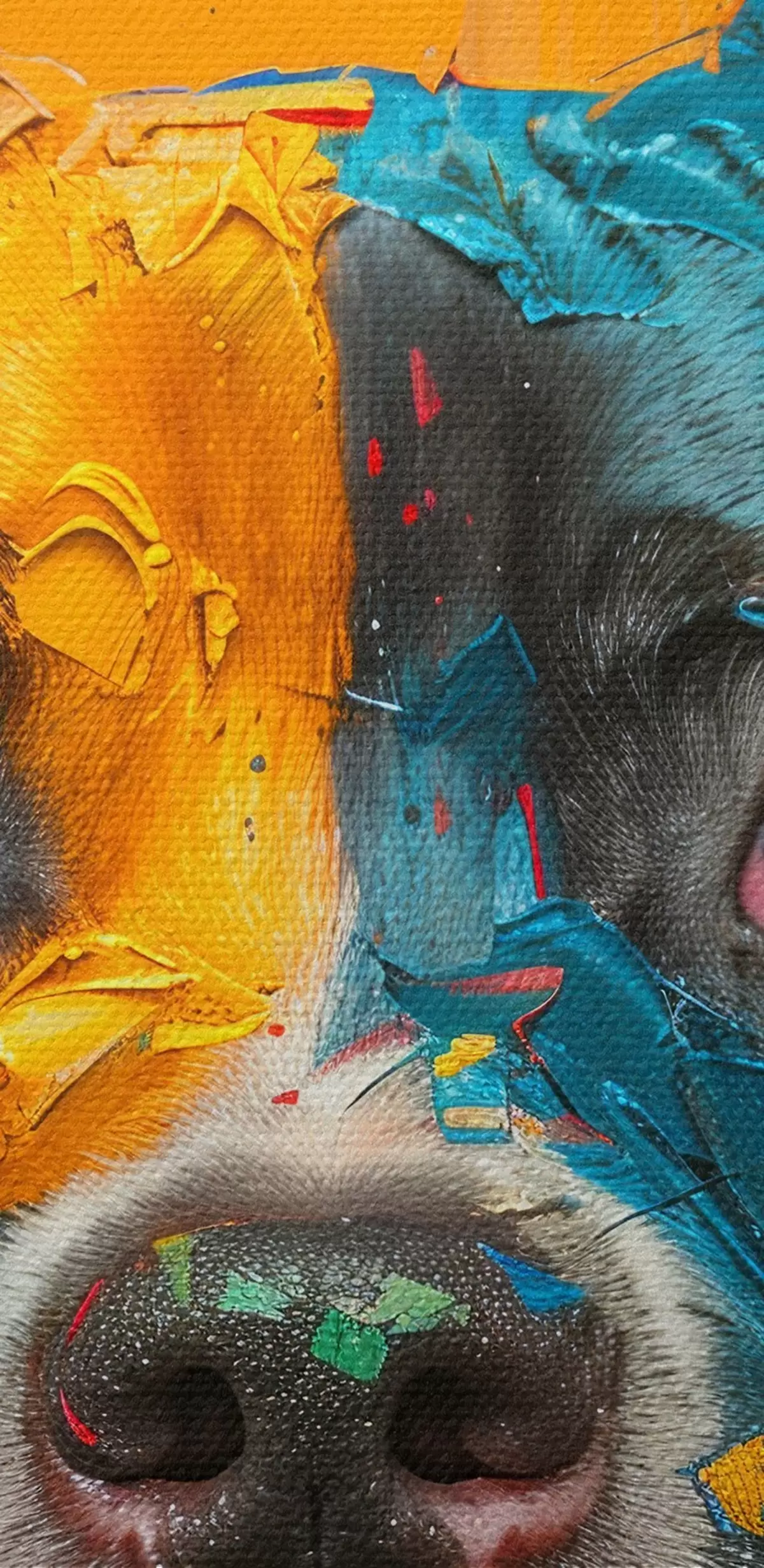 Ronde schilderijen Portret van een Pitbull met gele en blauwe olieverfstreken Nr r39722