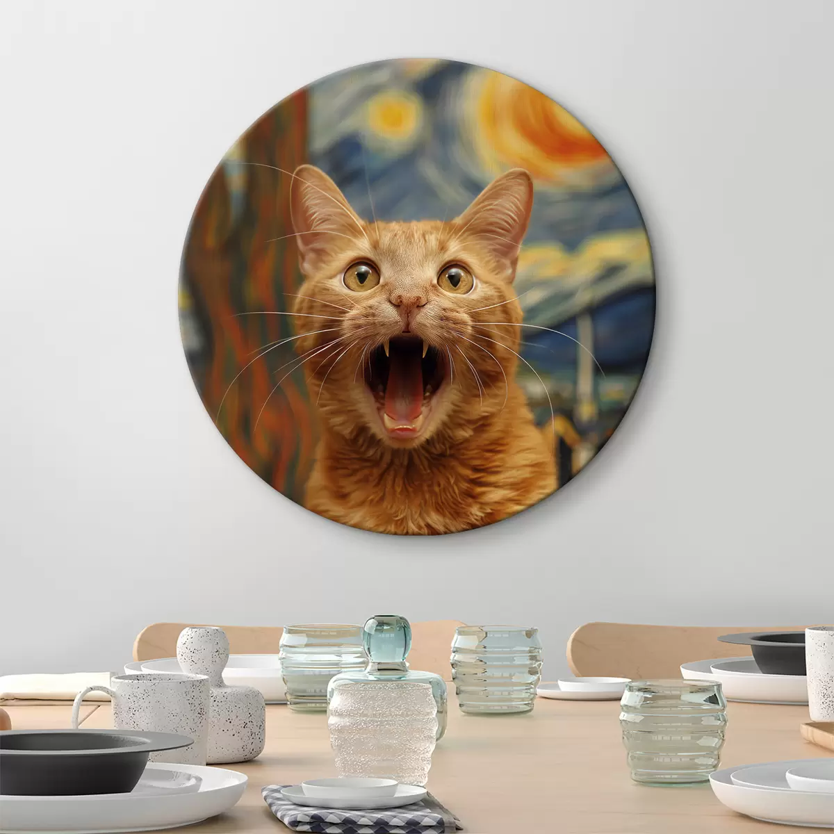Ronde schilderijen Van Gogh-stijl schilderij van 'De Schreeuw' met een kat r39724