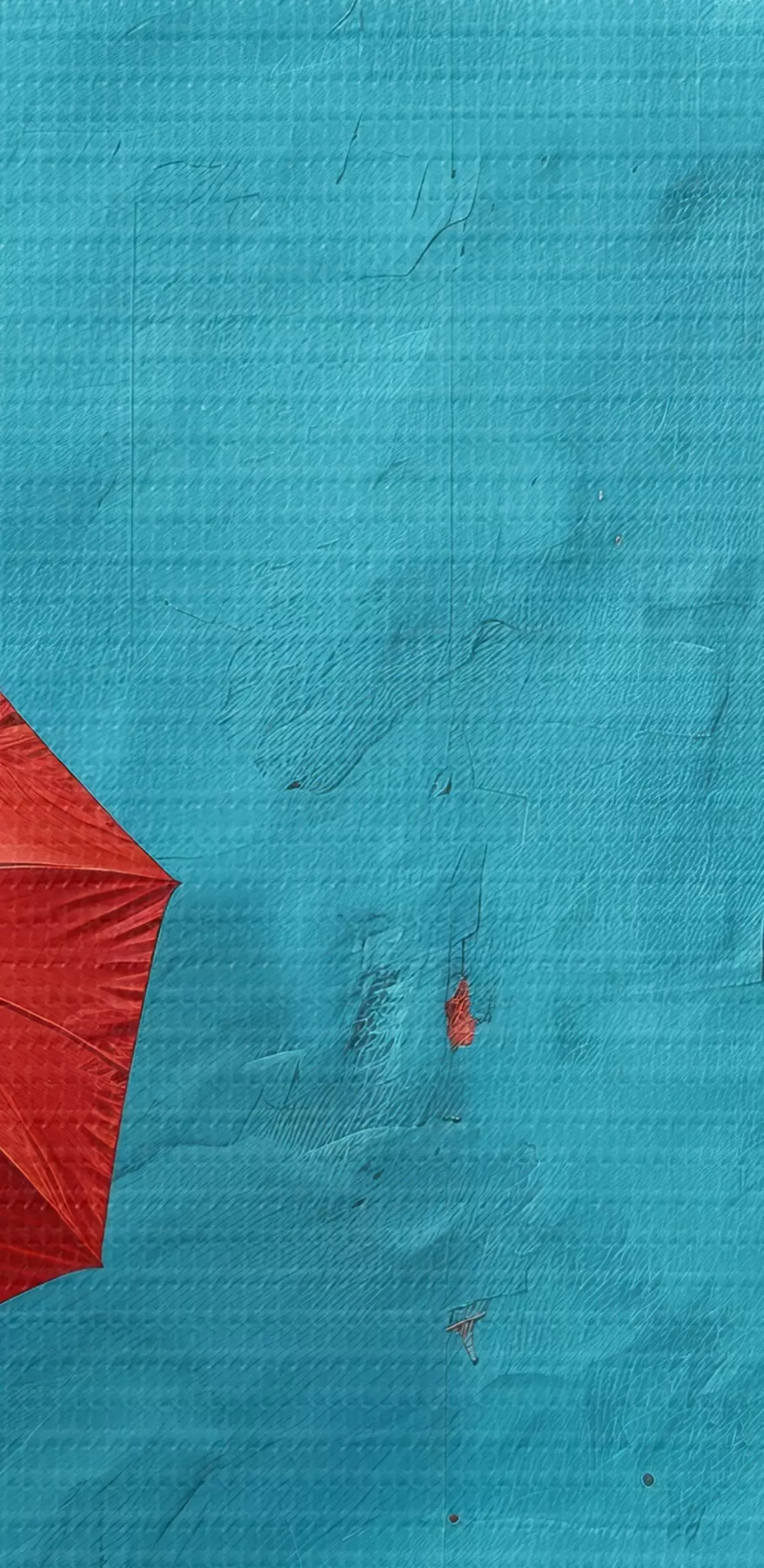 Ronde schilderijen Minimalistisch beeld van een meisje in het geel met een paraplu bij een muur r39731