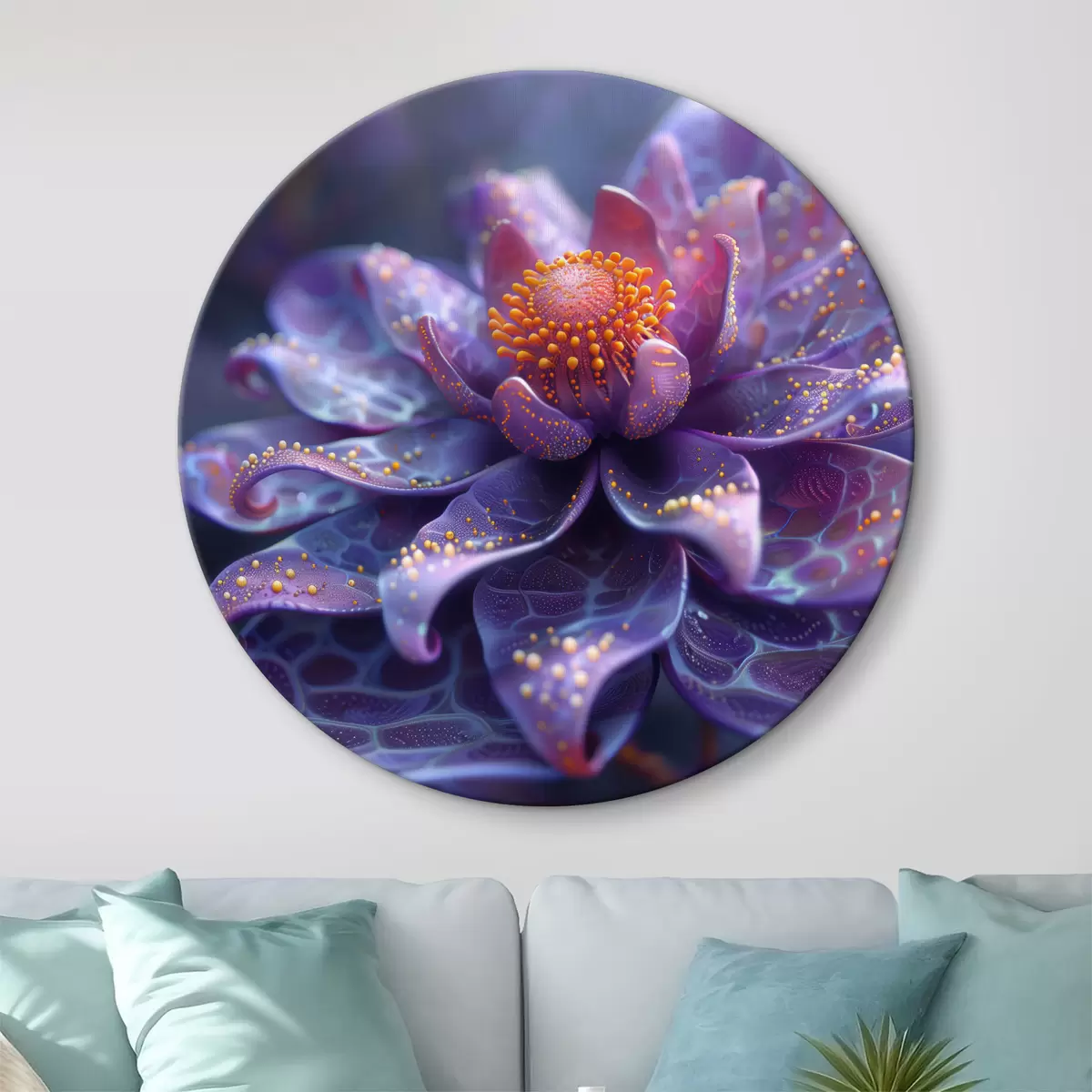 Ronde schilderijen Magische grote paarse bloem met accent r39743