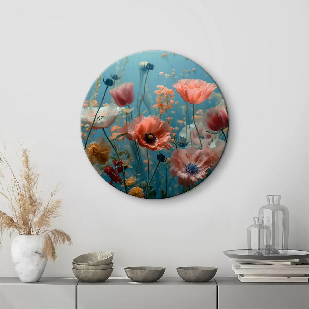 Ronde schilderijen Wilde bloemen, waaronder klaprozen, tulpen en meer Nr r39752