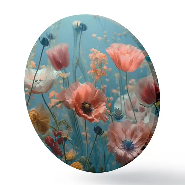 Ronde schilderijen Wilde bloemen, waaronder klaprozen, tulpen en meer Nr r39752