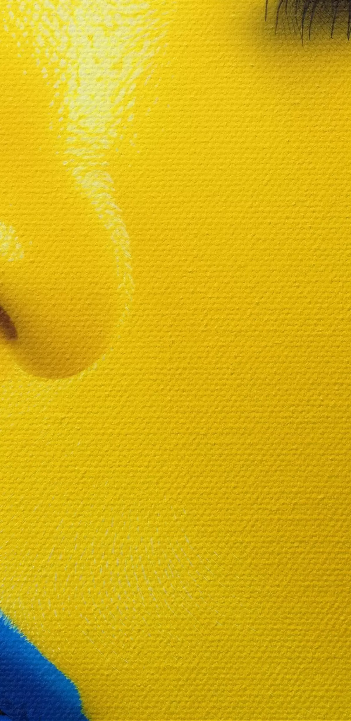 Ronde schilderijen Meisjesgezicht in blauwe en gele tinten Nr r39759
