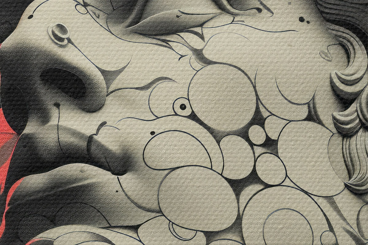 Ronde schilderijen Zwart-wit lineaire afbeelding van het hoofd van de Griekse god Apollo in pop-art stijl r39763