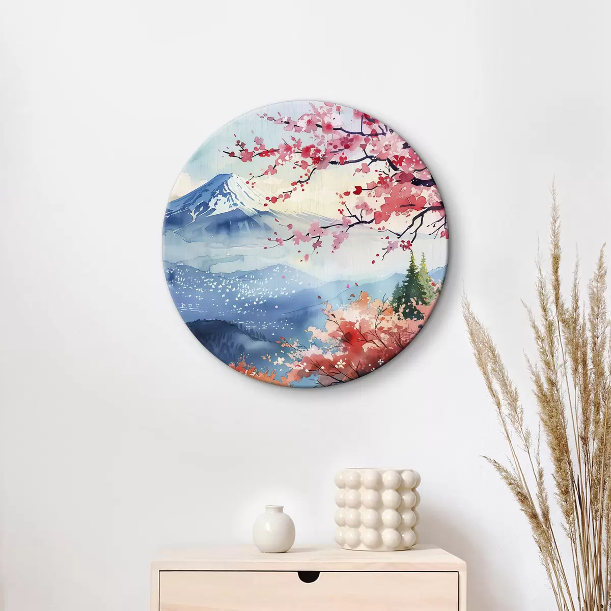 Ronde schilderijen Berg Fuji-landschap, oosterse natuur, kersenbomen, zonsondergang Nr r39775