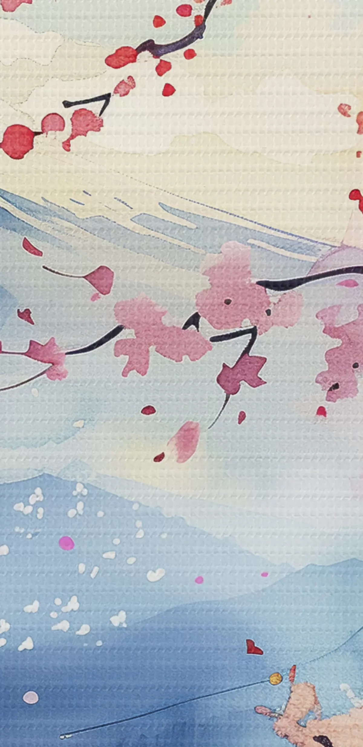 Ronde schilderijen Berg Fuji-landschap, oosterse natuur, kersenbomen, zonsondergang r39775