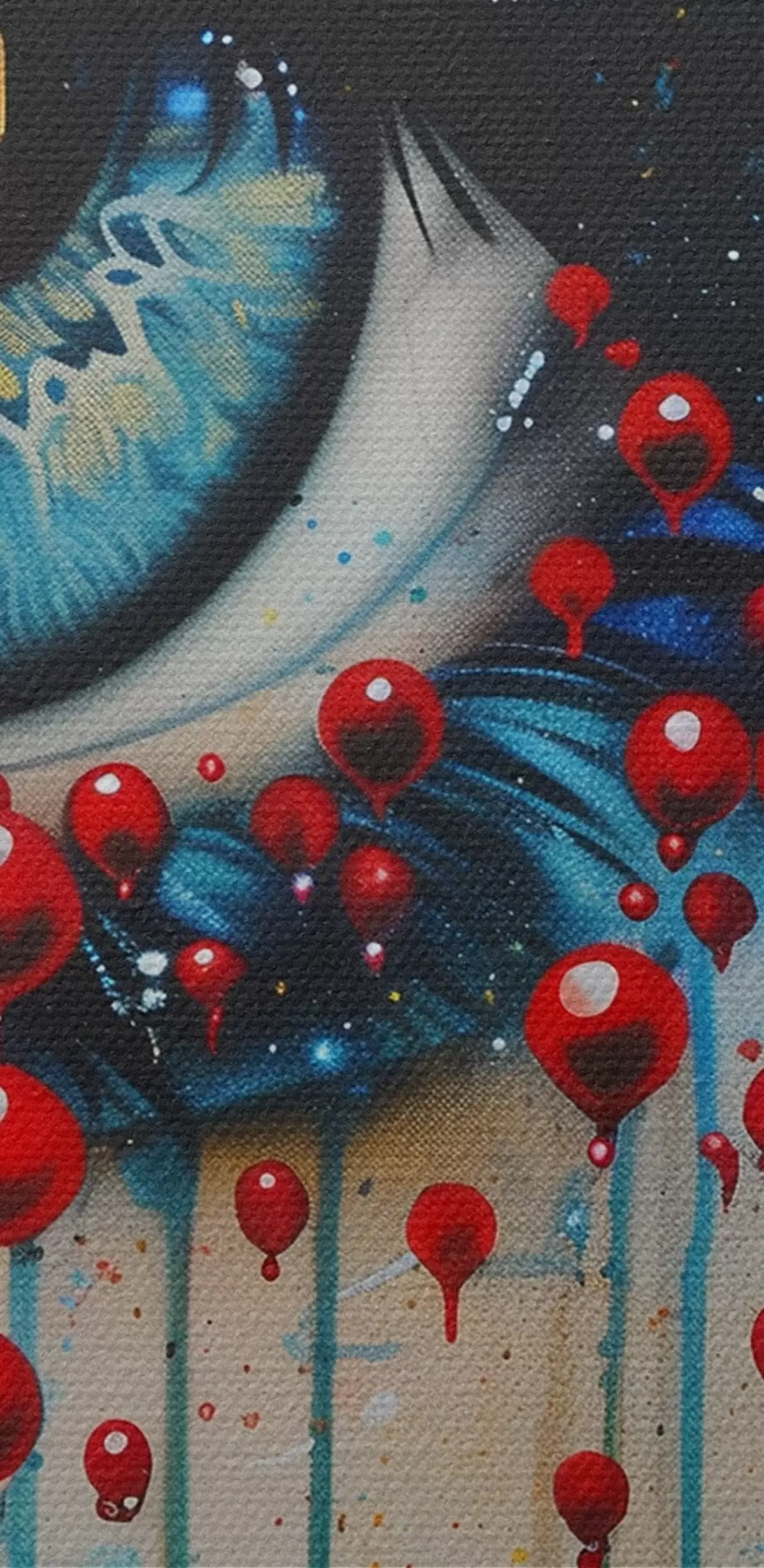 Het schilderij kan direct na ontvangst worden opgehangen. Het schilderij wordt opgespannen op een 2 cm breed houten spieraam.