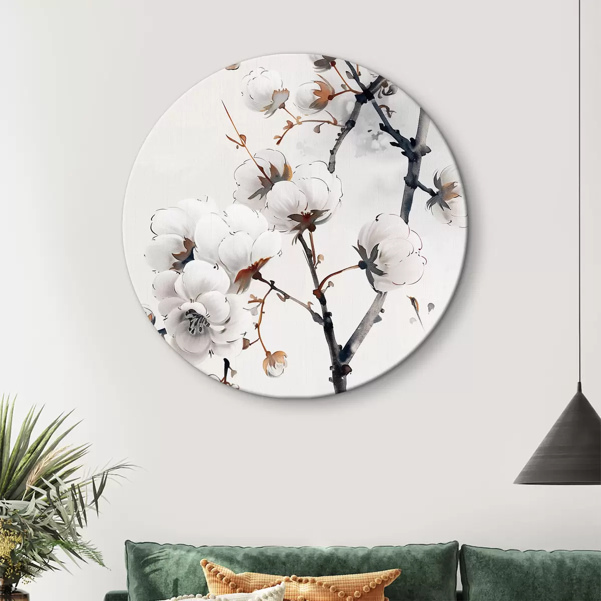 Ronde schilderijen Getrokken katoentakken Nr r39804