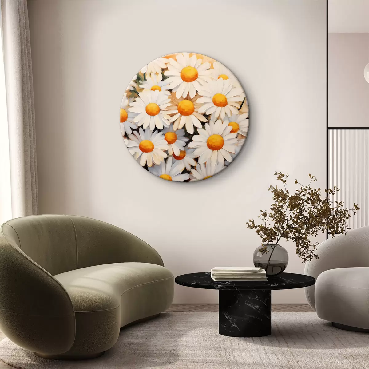 Ronde schilderijen Witte madeliefjes op geel olieverfschilderij Nr r39819