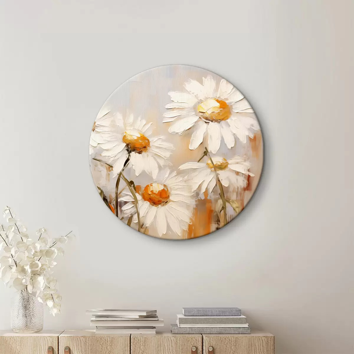 Ronde schilderijen Groot olieverfschilderij van witte madeliefjes Nr r39820