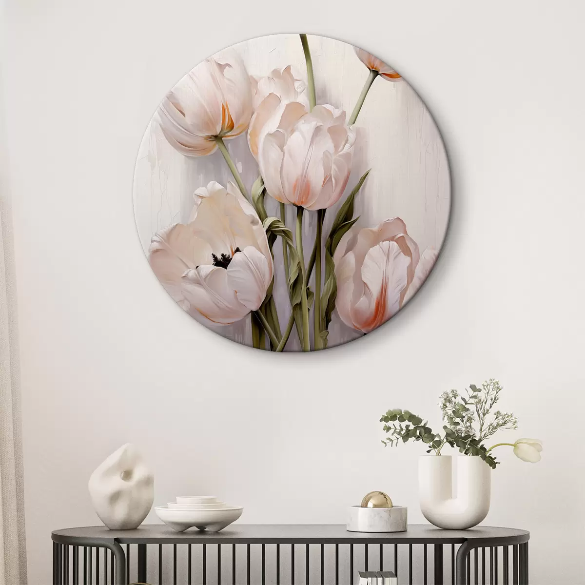 Ronde schilderijen Witte tulpen op een licht olieverfschilderij als achtergrond Nr r39821