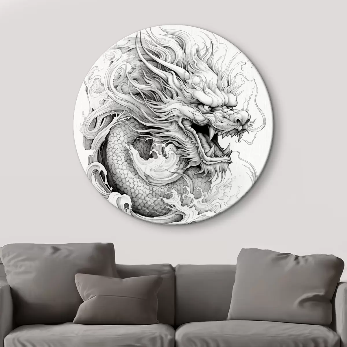 Ronde schilderijen Draak met open mond lijntekening Nr r39822