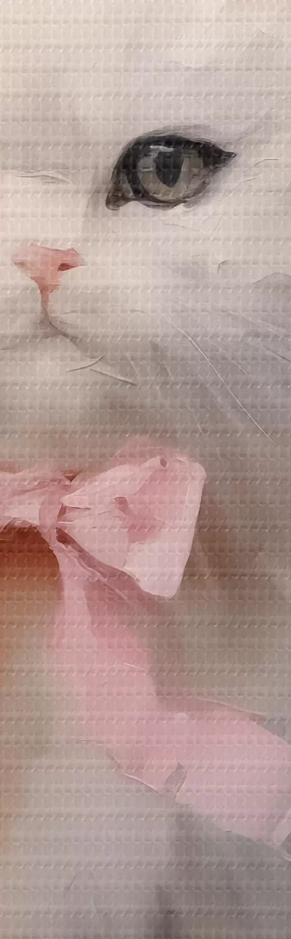 Ronde schilderijen Witte katten met roze strikken olieverfschilderij Nr r39826