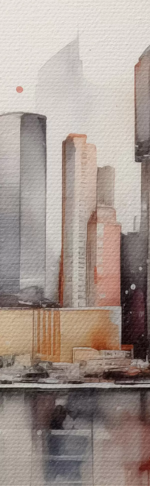 Ronde schilderijen Uitzicht op de stad New York, silhouetten bouwen, aquarel Nr r39828