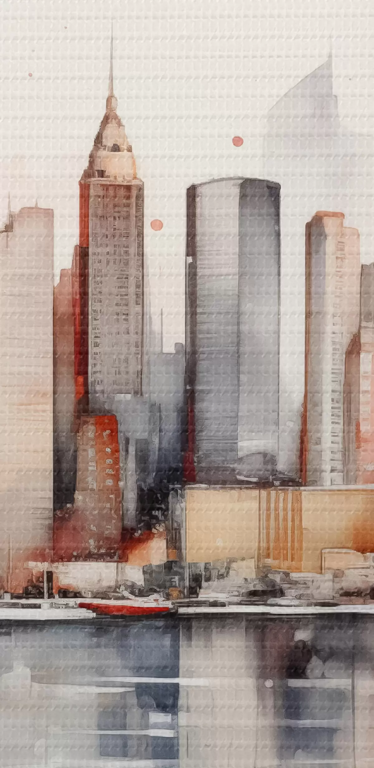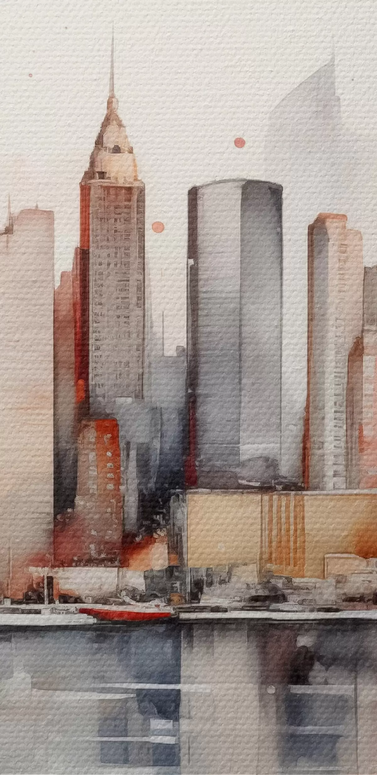 Ronde schilderijen Uitzicht op de stad New York, silhouetten bouwen, aquarel Nr r39828