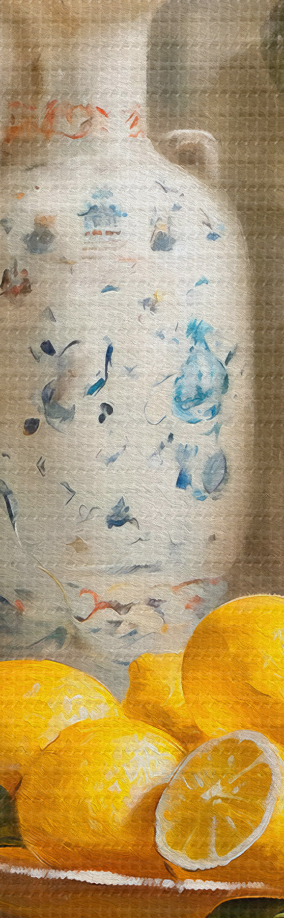 Ronde schilderijen Citroenen en vintage vazen op tafel Nr r39833