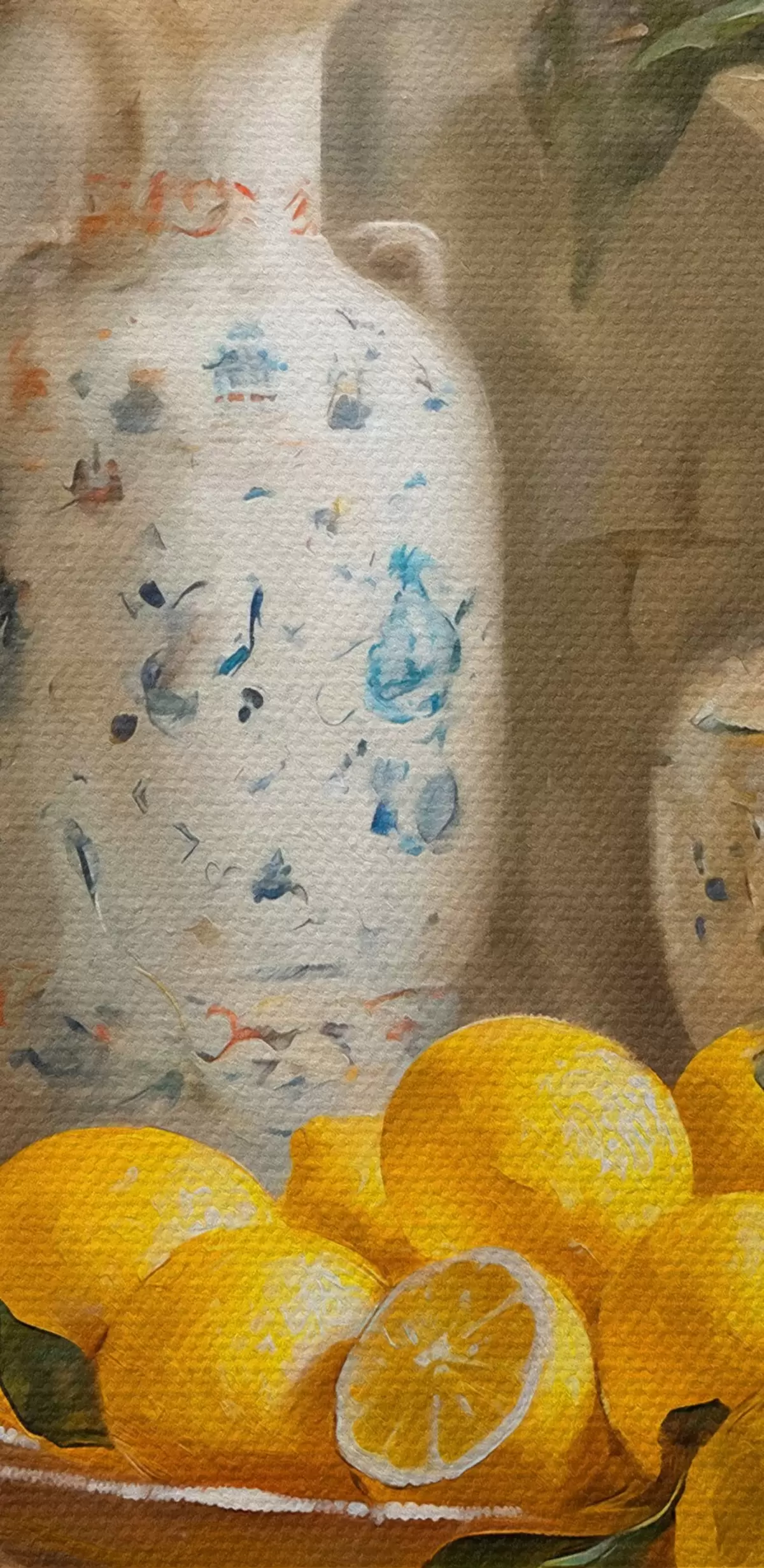 Ronde schilderijen Citroenen en vintage vazen op tafel Nr r39833