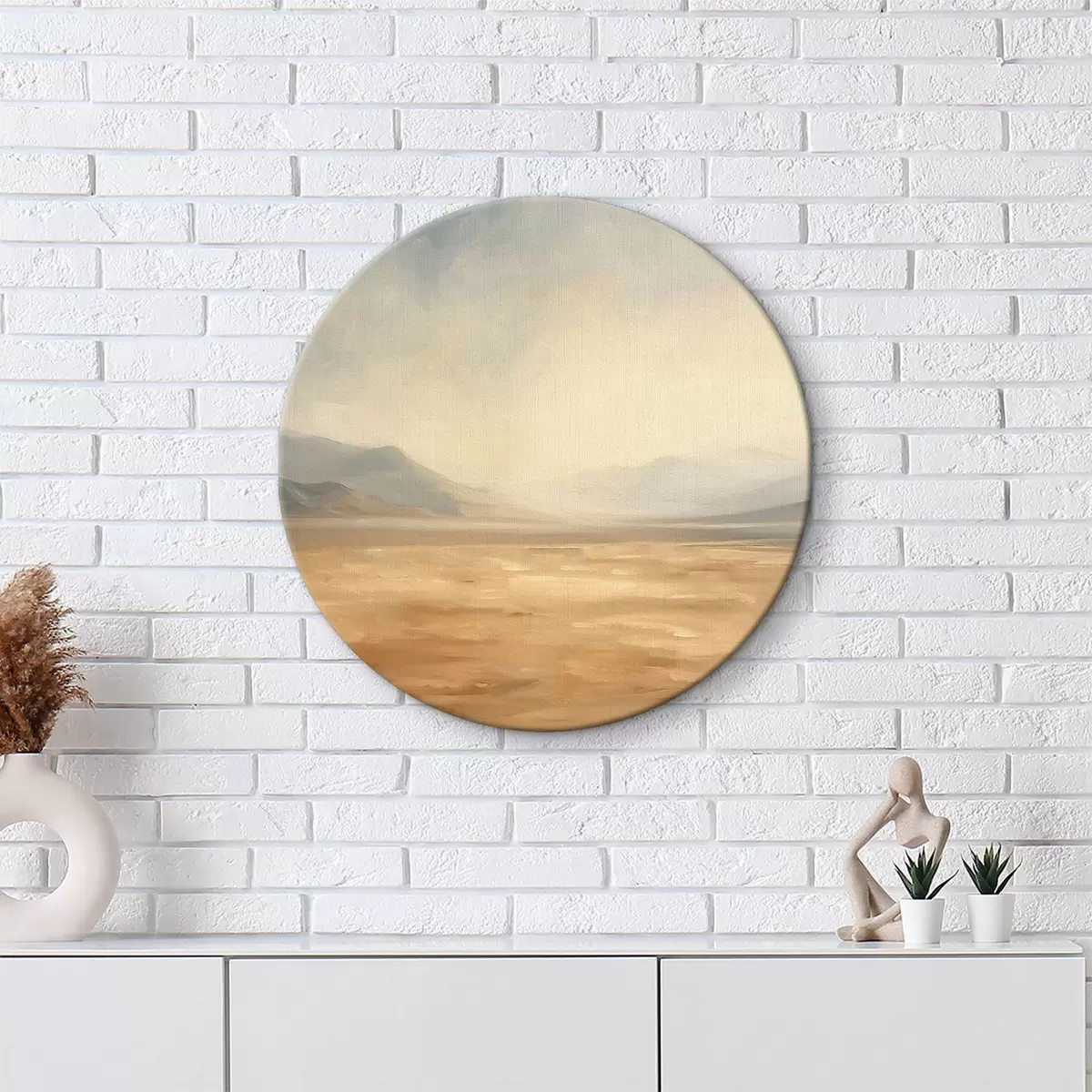 Ronde schilderijen Woestijn met bergen op de achtergrond een rustig landschap r39835