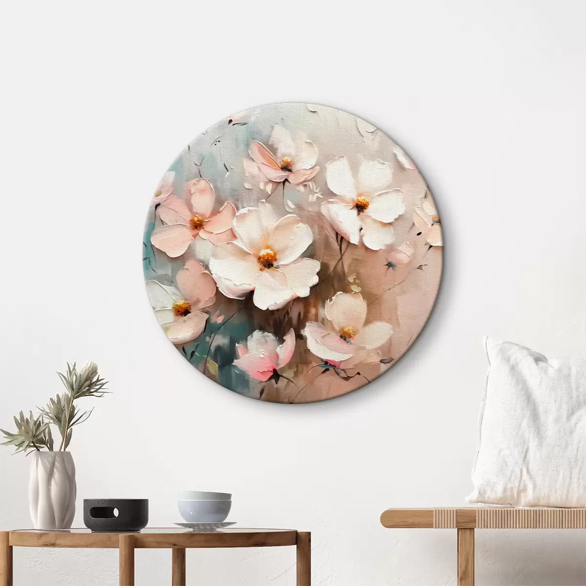 Ronde schilderijen Fijne bloemen met roze bloemblaadjes r39836