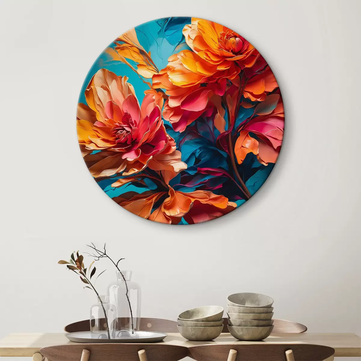 Ronde schilderijen Bloemen op een blauwe achtergrond Nr r39847