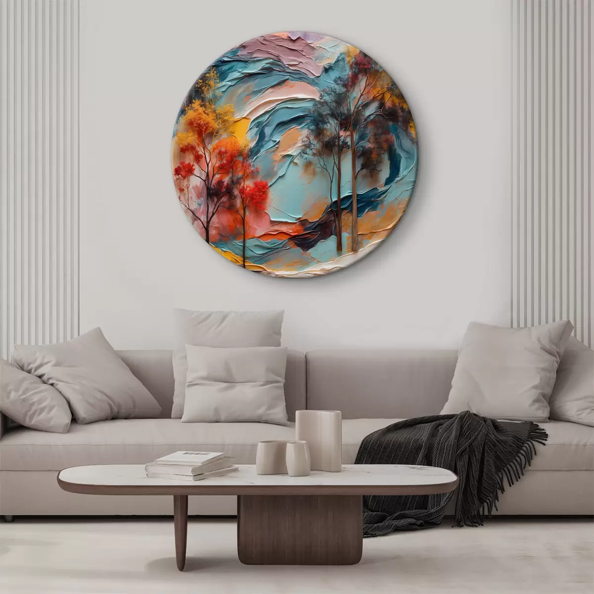 Ronde schilderijen Bomen op abstracte olieachtergrond Nr r39852