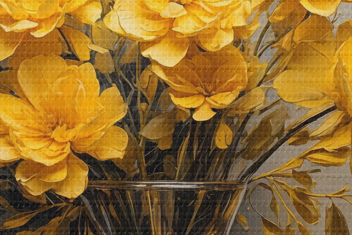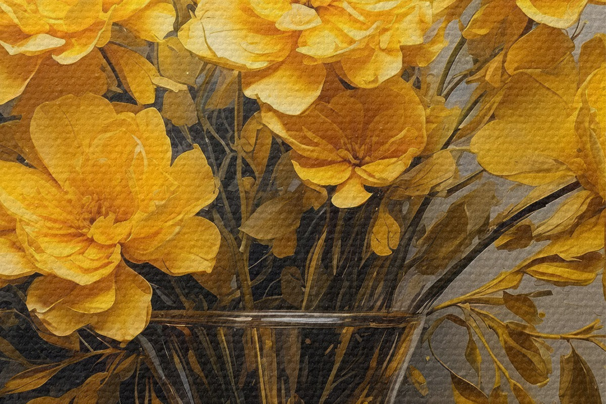 Ronde schilderijen Gele bloemen in transparante vaas op acrylachtergrond r39853