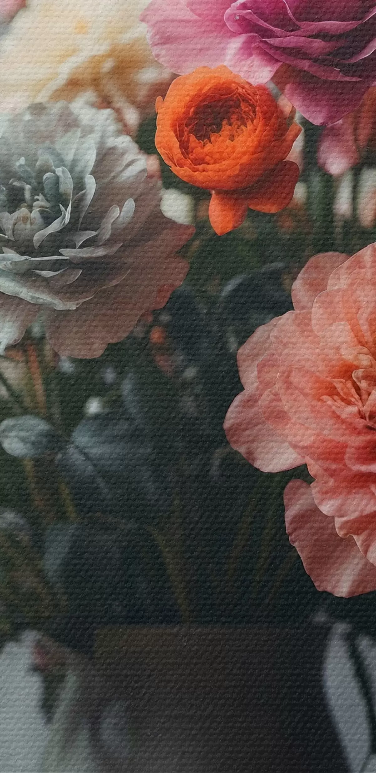 Er zijn drie soorten materiaal te bestellen: Economic Canvas - een dicht en duurzaam materiaal voor digitaal printen, identiek aan schildersdoek, waterdicht oppervlak, realistische weergave van details, materiaal met gemiddelde korrel. Premium Canvas - de textuur lijkt op die van schildersdoek (verweven kleine draden). Zachte, gedetailleerde reproductie van de afbeelding op een mat oppervlak. Eco-Premium - hoogwaardige 100% katoenen stof. Dankzij de natuurlijke katoenvezels is het materiaal duurzaam en slijtvast. Uitstekende kleurweergave en detail.