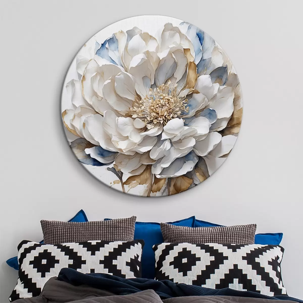 Ronde schilderijen Close-up bloem met witte, blauwe kleuren r39871