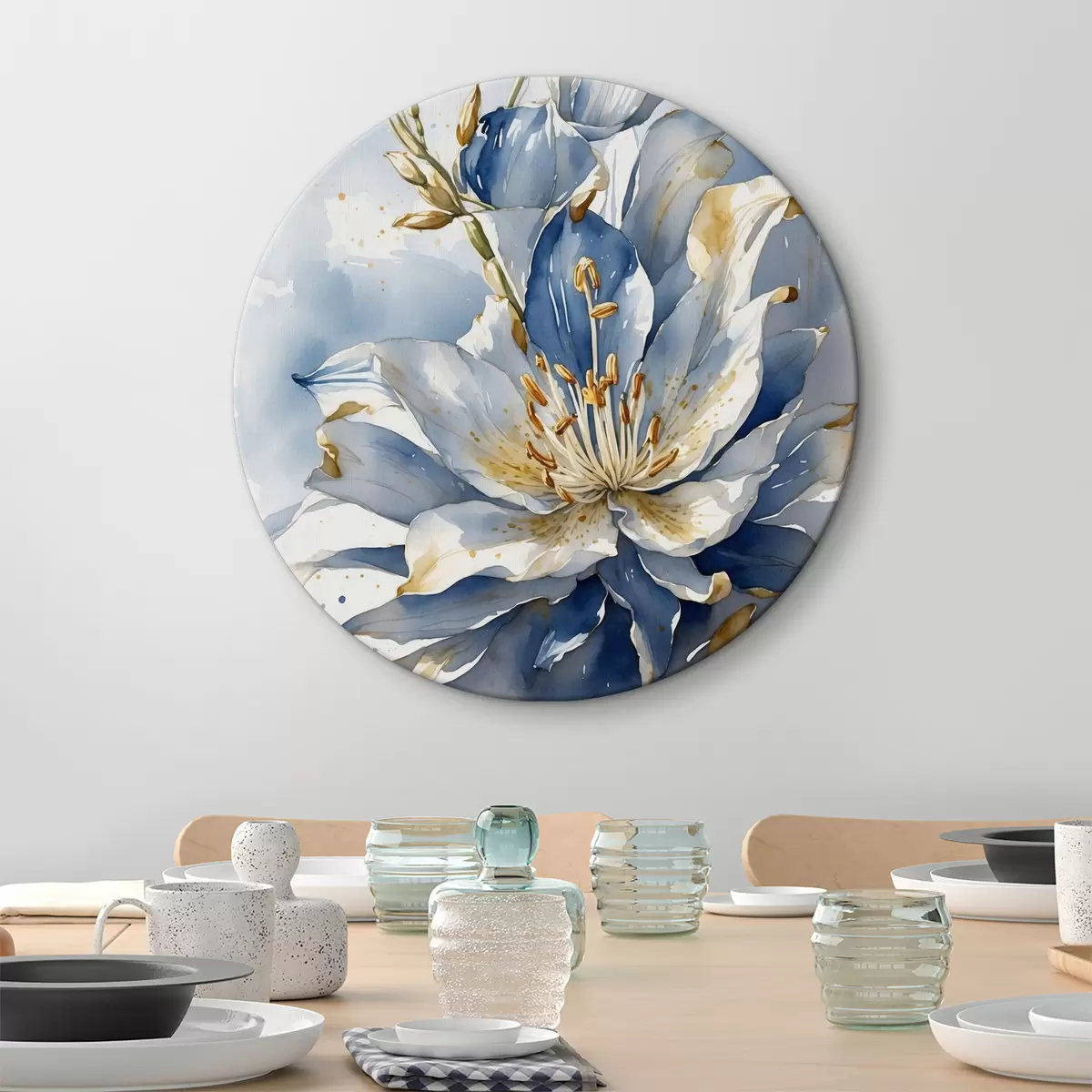 Ronde schilderijen Blauwe lelie met aquarel r39872