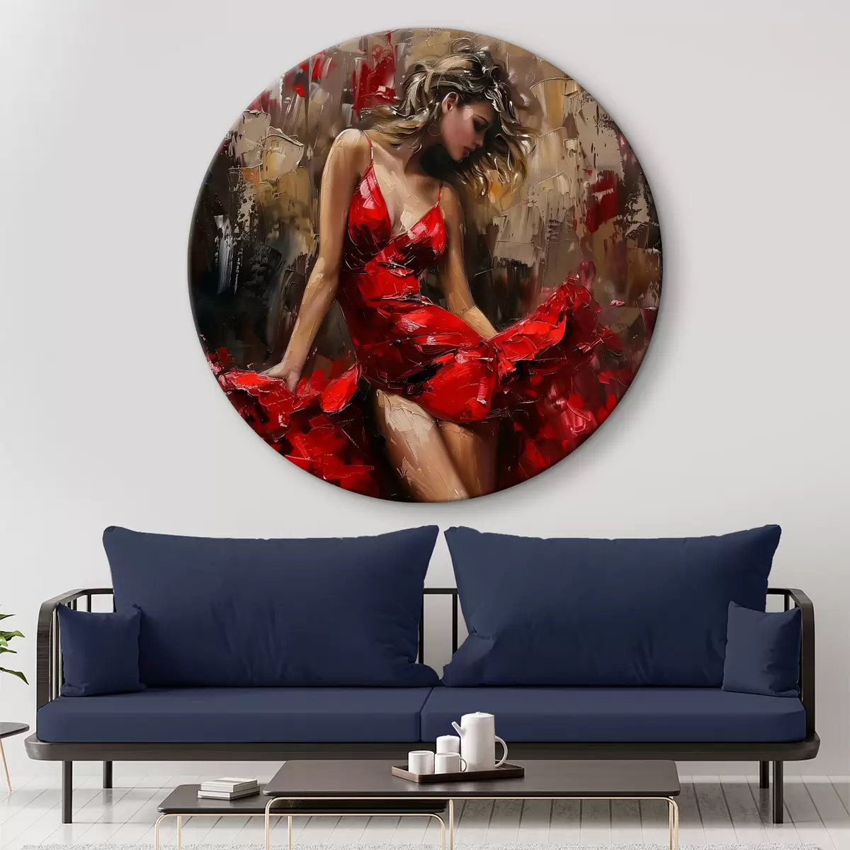 Ronde schilderijen Meisje in een rode jurk r39874