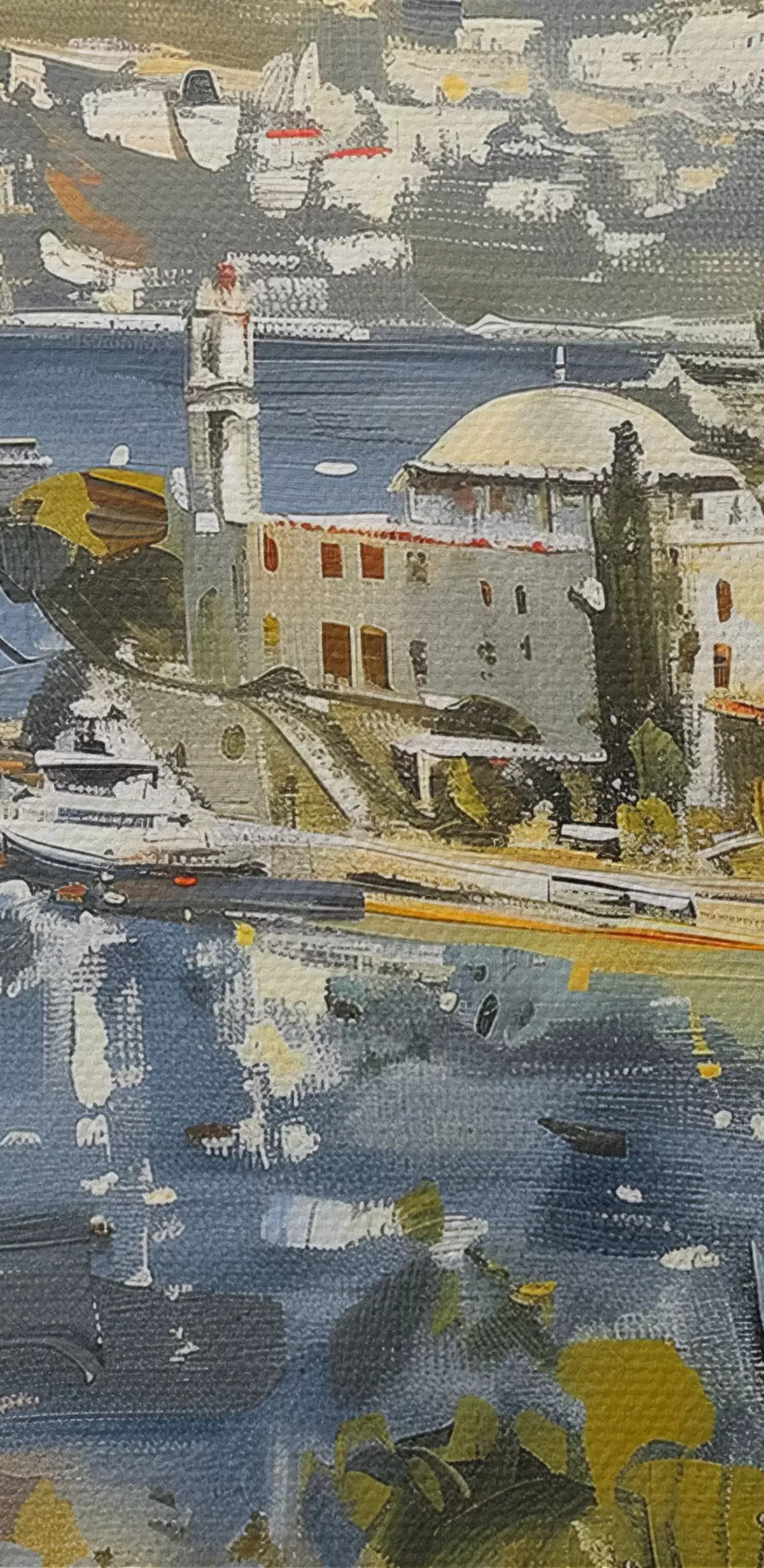 Het schilderij kan voorzichtig worden schoongeveegd met een droge zachte doek of spons; het wordt niet aanbevolen om natte producten te gebruiken. Het gebruik van een vochtige spons is alleen toegestaan als het schilderij gevernist is.