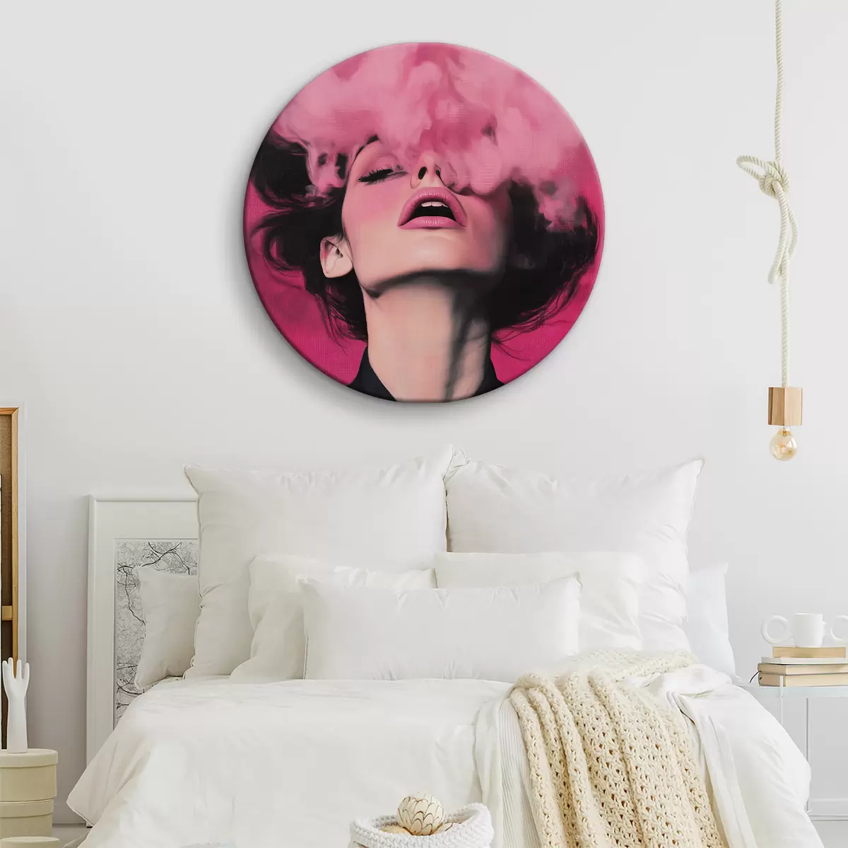 Ronde schilderijen Meisje en roze rook Nr r39909