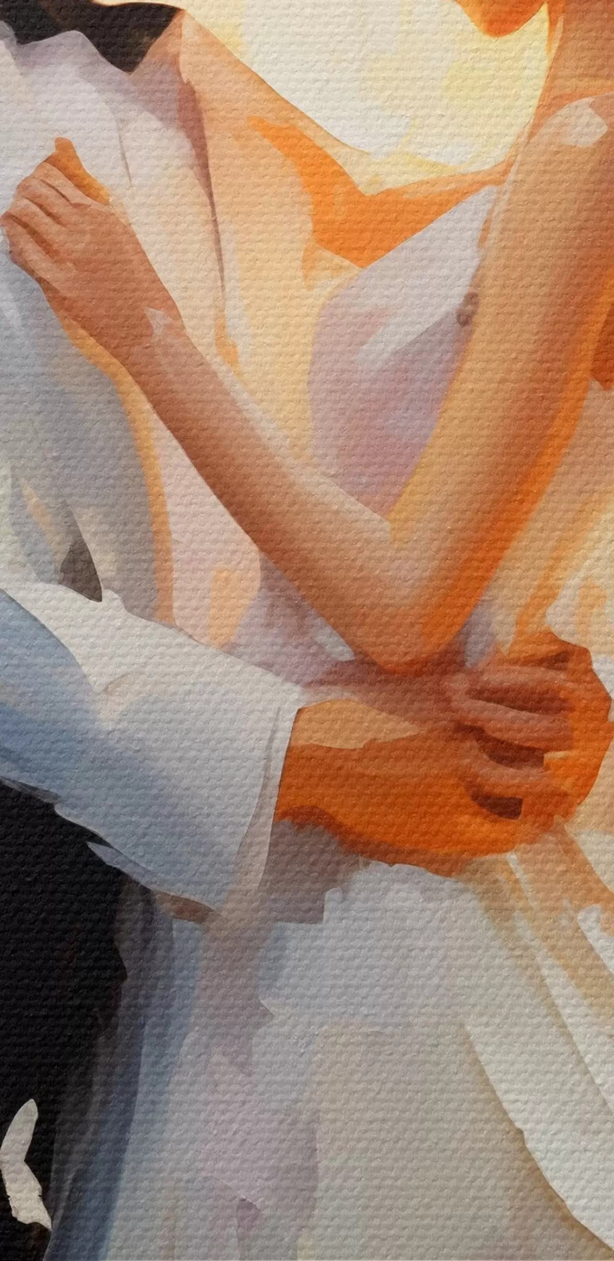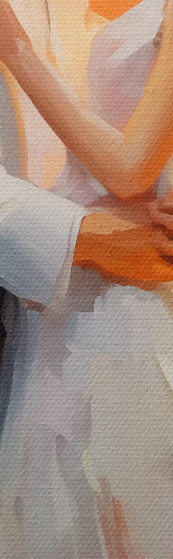 Het schilderij kan direct na ontvangst worden opgehangen. Het schilderij wordt opgespannen op een 2 cm breed houten spieraam.