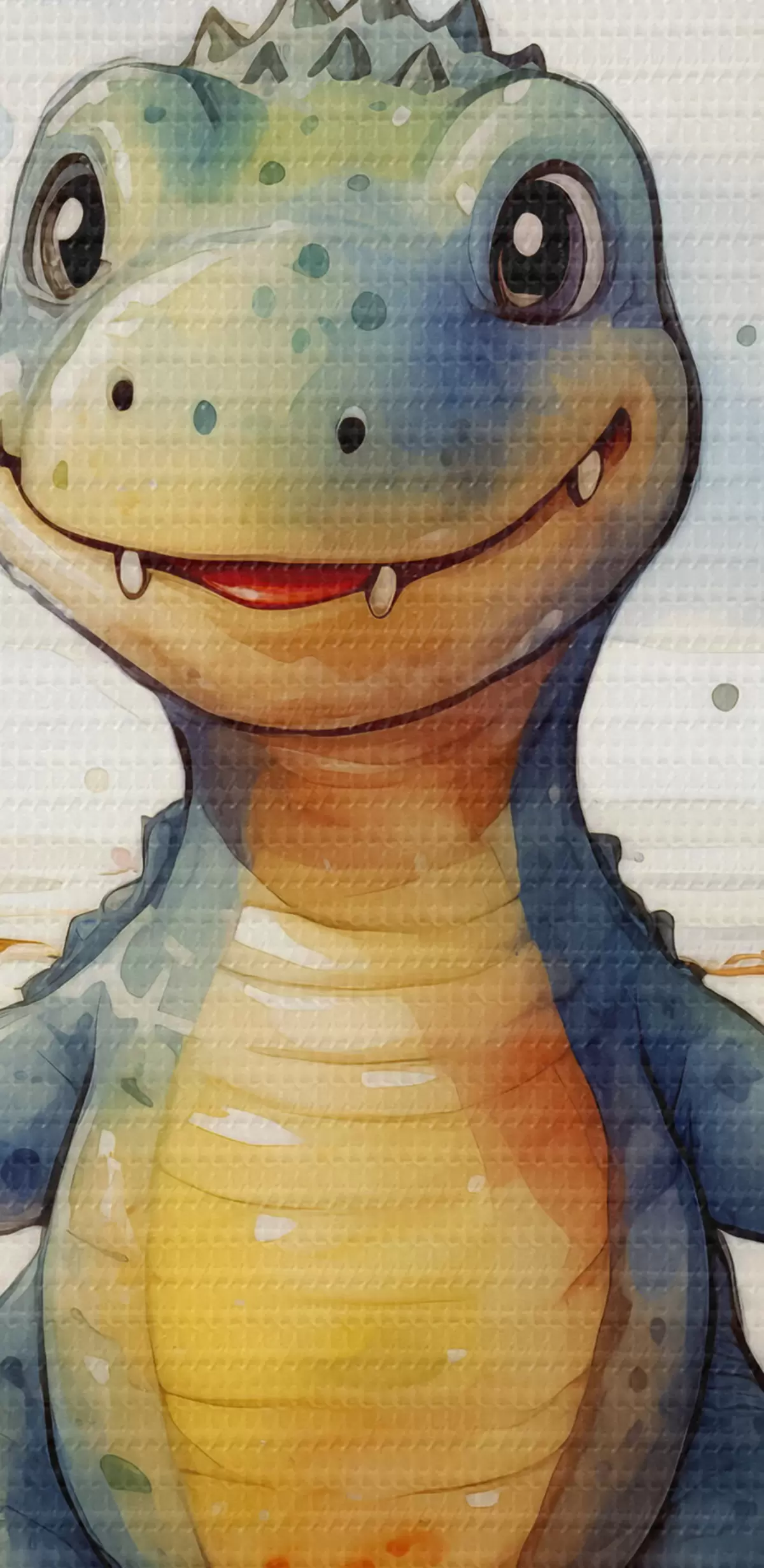Ronde schilderijen Dinosaurus in de rivier tegen de achtergrond van bergen en varens aquarel Nr r39930