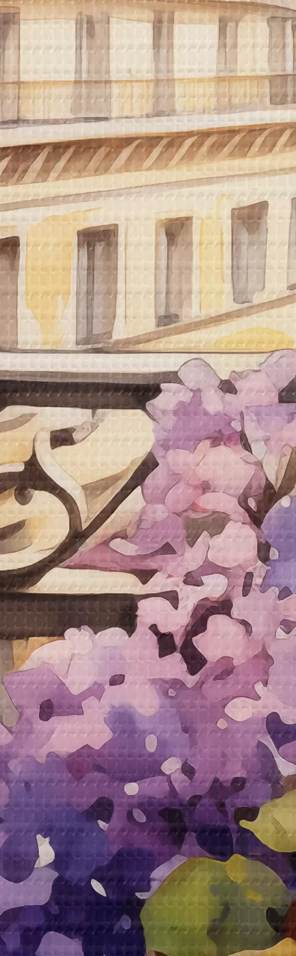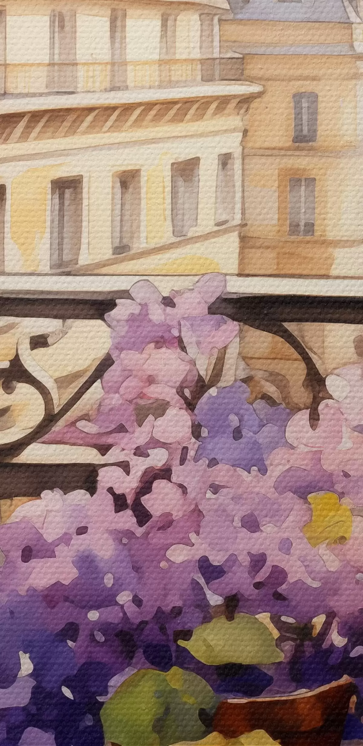 Ronde schilderijen Viooltjes in een pot op een balkon in Parijs aquarel Nr r39931