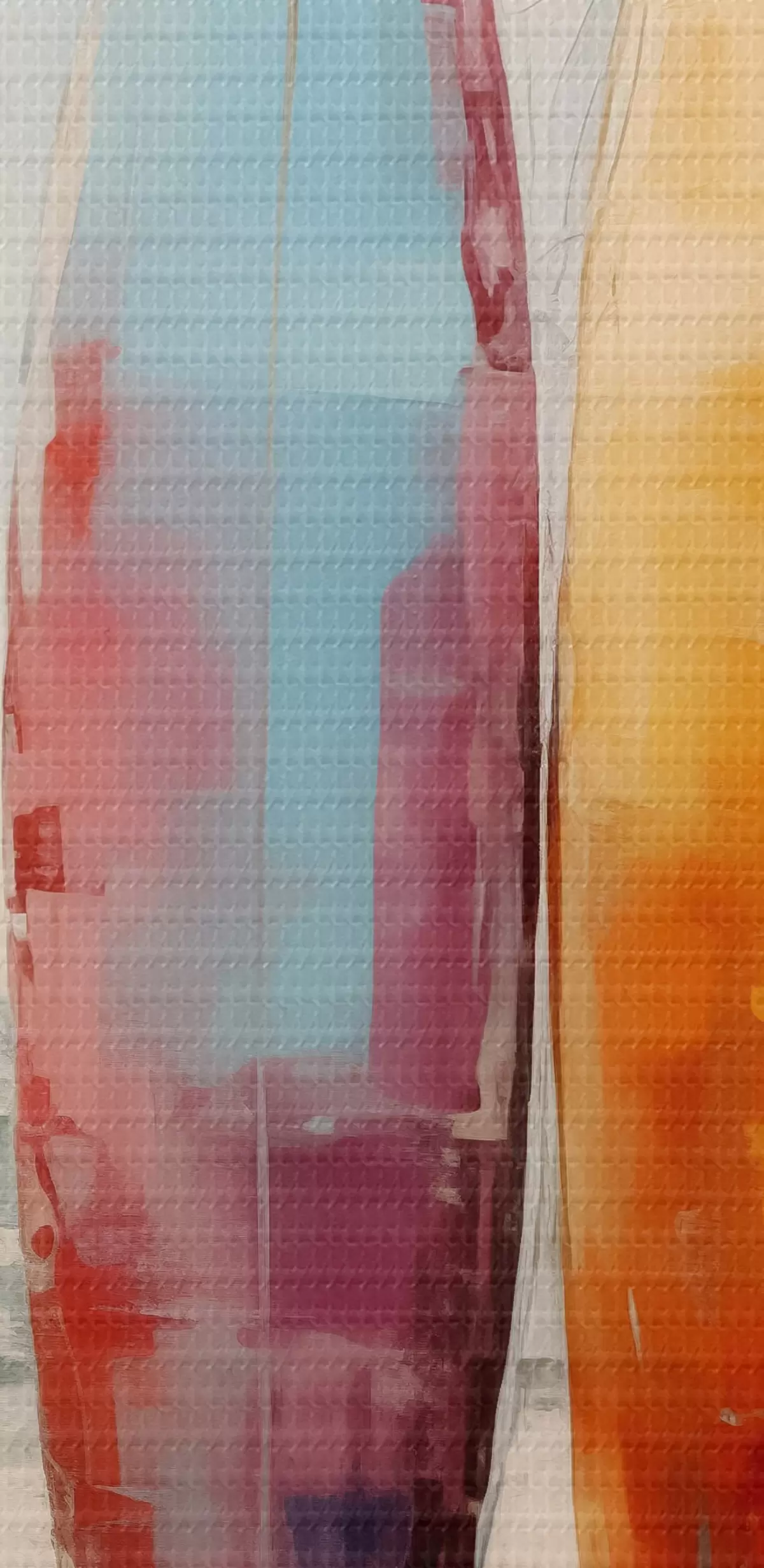 De fijne weving van draden op dit doek lijkt op het oppervlak van professionele schildersdoeken.